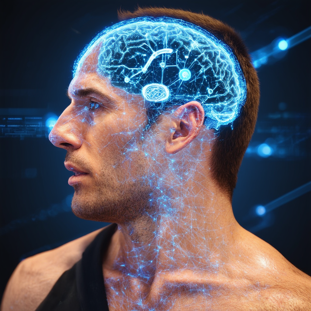a real man with amazing brain that show Artificial intelligence (AI) technology In the future
