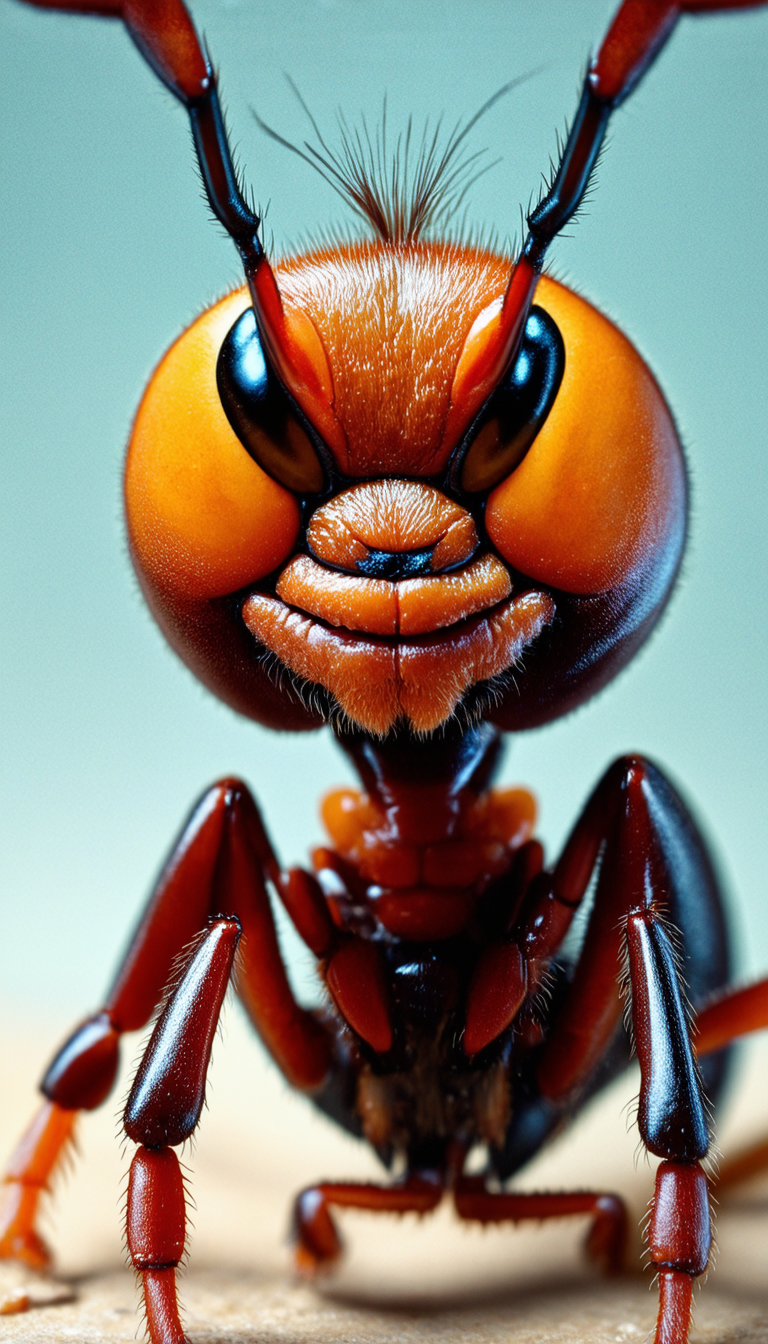 Creat an amazing NFT of an angry ant's face , Ants have human-like organs and organs. But his face is a combination of human and ant.